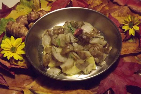 Le particolari caratteristiche organolettiche del topinambur ne fanno un ottimo alimento, da utilizzare sia crudo che cotto. Tagliato finemente da crudo può essere utilizzato in insalata. Sbollentato velocemente con acqua e aceto, speziato a piacimento con foglie di alloro, pepe e chiodi di garofano può essere conservato sott’olio per una preparazione tipica della montagna veneta, le “cartufole”. Il topinambur può essere anche utilizzato come ingrediente vegetale per la preparazione di un ottimo risotto.